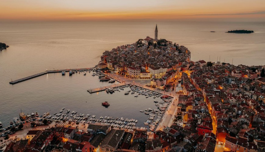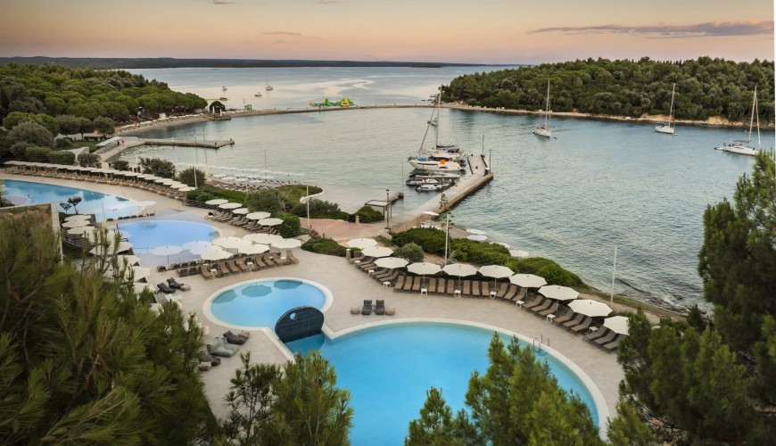 Dag 4-9 Rovinj. Hotel Istria kommer att vara vår fasta punkt under 7 nätter. En bilfri oas av sol och hav med egna stränder. Här kan man även njuta på den fina utomhus terrassen och sola i behagliga solstolar eller slappna av i hotellets SPA. Hotellet har 4 st olika pooler 2 st för vuxna och 2 st för barn. Vid middagarna serveras lokala viner,öl,vatten och läsk gratis. Den trivsamma och mysiga staden Rovinj ligger bara 15 minuters båtresa från ön. Båtar avgår varje timme och som hotellets gäst så är båtresan gratis